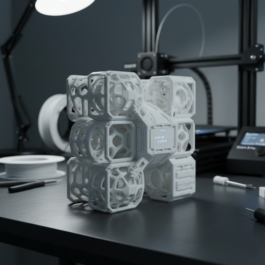 Ich fertige 3D-gedruckte Bauteile bis zu einer Größe von 220 × 220 mm an.